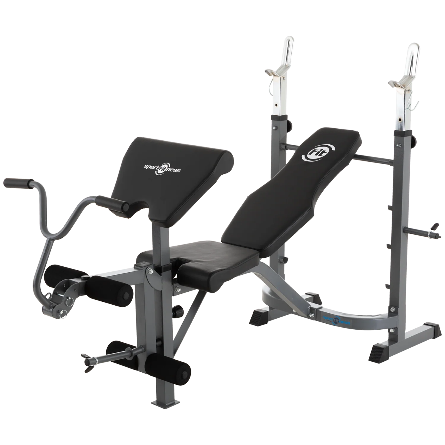 • Incluye: Banco predicador para trabajos con peso libre, 4 posiciones de ajuste en el espaldar, 2 soporte para almacenamiento de discos estándar 1", soporte para barras ajustable.